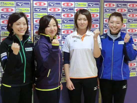 2013年の日本代表決定戦に挑んだ4チームのスキップ。左から北海道銀行フォルティウスの小笠原歩、中部電力の藤澤五月、札幌国際大学の吉村紗也香、LS北見の本橋麻里