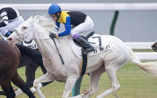 ソダシとママコチャの半弟となる白毛のカルパ(牡4、栗東・須貝尚介厩舎)が、土曜阪神7Rの4歳上1勝クラス(ダ1400…