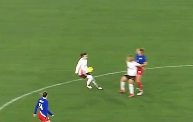 この後、籾木から右サイドを駆け上がるMF浜野まいかへと大きく展開されると、大外をオーバーラップしてきたDF守屋都弥がクロスを供給。ゴール前で合わせてきたのが、つい先ほど中盤の底で圧巻プレーを見せた長谷川だった。相手DFエミリー・フォックスとのエアバトルには敗れてしまったが、独力で局面を動かし、フィニッシュにまでも絡もうかというシーンだった。