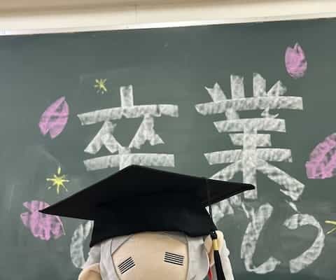 「卒業のフリーレン」と綴り、1枚の写真をアップ。そこには学士帽を被ったフリーレンの姿が。