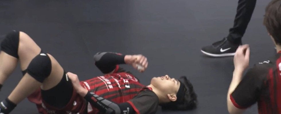 とてつもない身体能力でスパイクを決め切った。味方が上げた斜め後方からのトスを、無理な体勢から“後傾”で相手コートに突き刺しセットポイントを獲得したプレーが話題を呼んでいる。