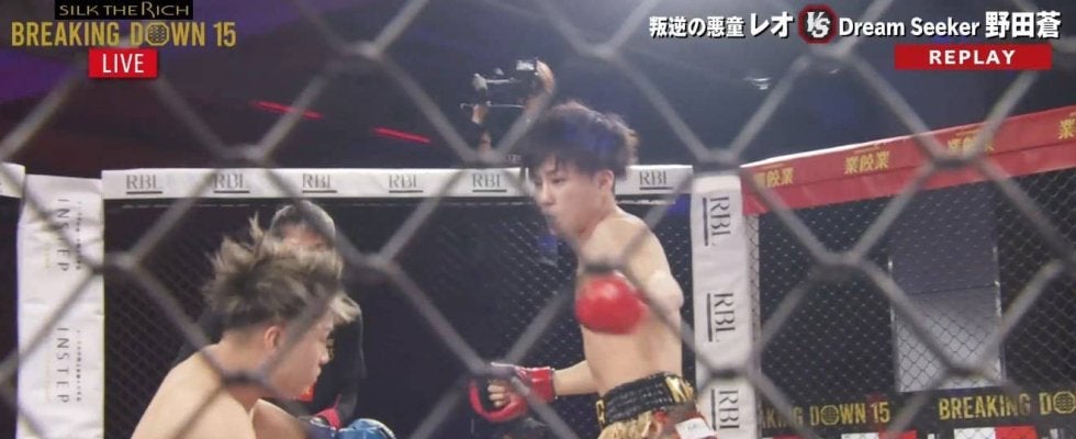 朝倉未来がCEOを務める1分間最強を決める格闘技イベント『BreakingDown15』が、2日に東京ドームシティ内プリズムホールで開催。第6試合バンタム級ワンマッチMMAキルールで、レオと野田蒼が対戦し、野田が6秒KO勝ち収めた。