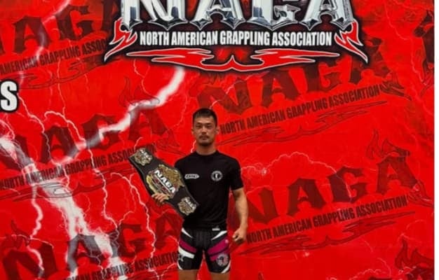 牛久絢太郎はグラップリングトーナメント「NAGA」にて初参加ながら優勝し、1位の表彰台に堂々と佇んでいる写真を公開した。