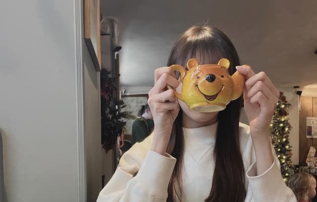 7枚目のオフショットでは、プーさんの器で顔を隠す渡辺の姿を見ることができる。