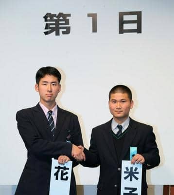 「ずっとドキドキしていた」。米子松蔭の惣郷峻吏(そうごうしゅんり)主将は抽選会場の2列目中央の席に座り、自分の番を待った。予備抽選の後の本抽選で、出場32校中27番目に引いたくじは「4」。先に3番を引いていた花巻東の隣に校名の札がかけられた。