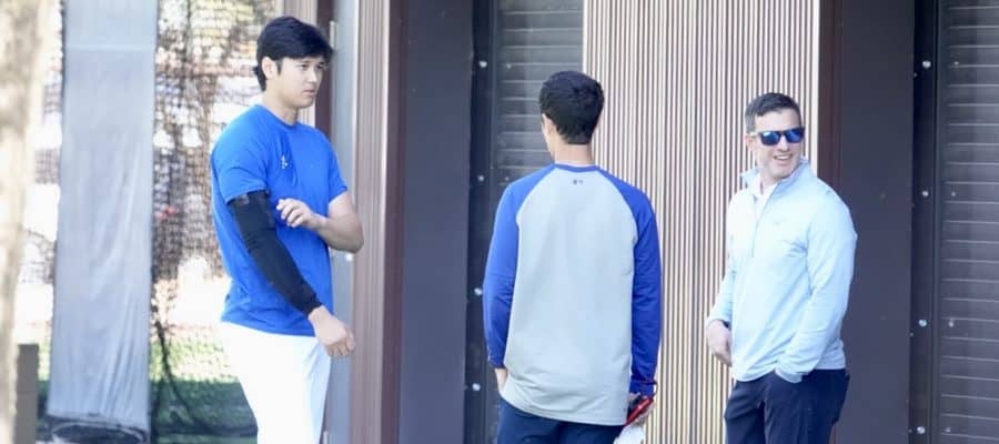ドジャースの大谷翔平投手は9日(日本時間10日)、アリゾナ州グレンデールの球団施設で2日連続でキャッチボールを行った。弾道測定分析デバイスを展開するラプソード社の機器を使用し、捕手役が座った状態で21球を投げた。