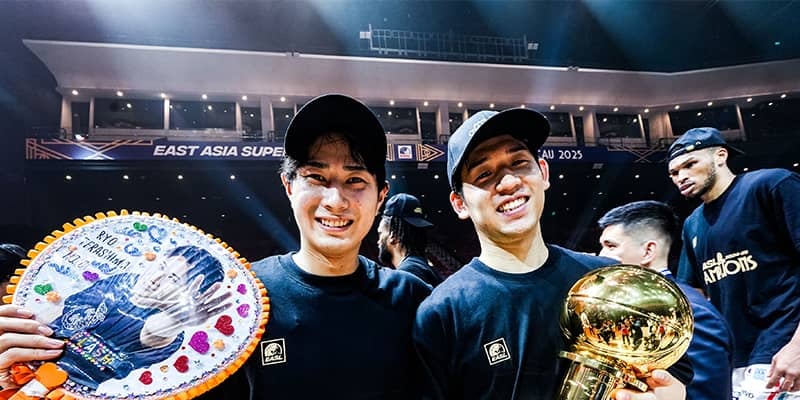 Bリーグでは現在西地区5位ということもあり、キャプテンとしては「苦しい状況だったので、もやもやしていたというか、チームを勝たせるためにということを常に考えているので。そこでひとつEASLのタイトルをとれたことは素直にうれしいですね」ともコメント。シャンパンを浴びた祝勝会では「Bリーグの強さを証明できたと思います。タフスケジュールのなか、スタメン、ベンチメンバー、スタッフも含め全員で勝ち取った優勝だと思います」と、昨シーズンの千葉ジェッツに続くBリーグ勢の連覇に胸を張った。