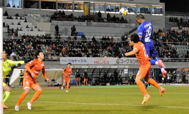 先制は愛媛。甲田英将選手が至近距離のゴールキーパーをかいくぐって押し込んだ。今治は後半3分、クロスを加藤潤也選手が頭でつないだボールに、マルクス・ヴィニシウス選手が頭から飛び込んで追いついた。