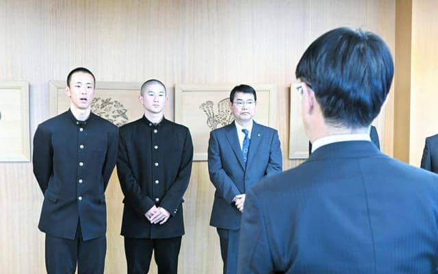 山下知事は「甲子園で勝ち進むことを期待している。気持ちで負けず、正々堂々と戦ってほしい」とエールを送った。中野雅史議長も「県代表としての誇りを持って、力と技を存分に発揮してほしい」と選手らを鼓舞した。