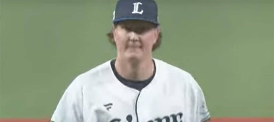 阪神戦の9回に登板した西武のトレイ・ウィンゲンター【画像:パーソル パ・リーグTV】