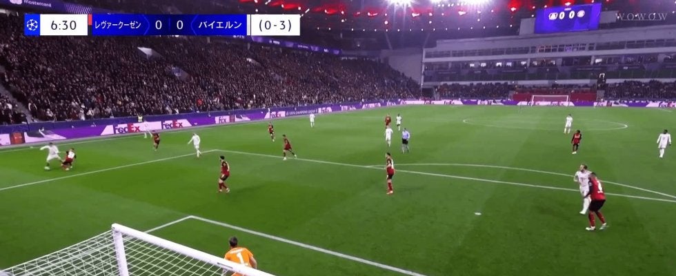 バイエルンは日本時間3月12日、チャンピオンズリーグ(CL)のラウンド16・2ndレグでレヴァークーゼンと対戦。その開始5分、右サイドで当代屈指のテクニシャンが圧倒的な個人技を披露した。