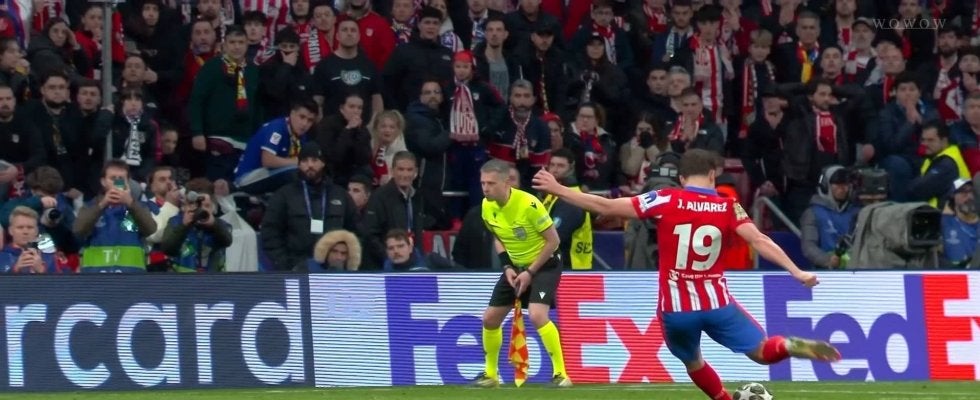 ベスト8勝ち上がりをかけた大事なPK戦で、不運なミスが起こった。アトレティコ・マドリードのFWフリアン・アルバレスのシュートはゴールネットを揺らすも、足を滑らせた際に軸足がボールに触れていたために2度蹴りの判定で失敗とされ、ファンたちが落胆した。