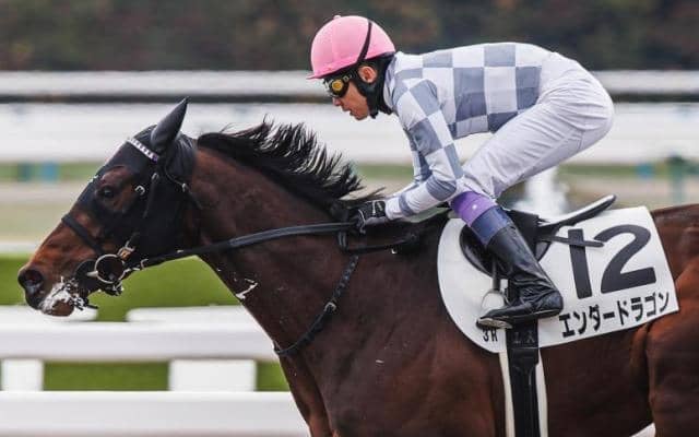 エンダードラゴンは父リアルスティール、母ダストアンドダイヤモンズ、母の父Vindicationの血統。母は米国のG2とG3の勝ち馬。半兄のドウデュースは21年に朝日杯FS、22年に日本ダービー、23年に有馬記念を制覇。さらに昨年は天皇賞(秋)とジャパンCを制し、4年連続のGI制覇を果たすとともに、年度代表馬に選ばれている。この血統が評価されて、22年のノーザンファーム・ミックスセールで8600万円(税抜)で取引された。