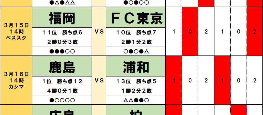 今回のtotoはJ1第6節の10試合と、J2第5節の3試合が対象となっている。過去のデータや直近の様子などから、分析を進めてみよう。