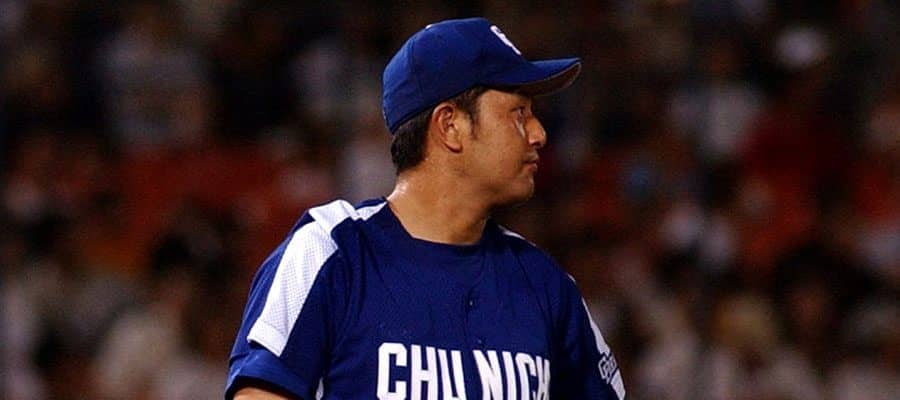 中日打線が2回に一挙7点。大量援護を受け、7回途中を4失点で勝利投手になった。2002年は左肘痛に苦しんだ野口氏だが、2003年は9勝をマークして規定投球回にも到達。状態も少しずつ戻ってきていた。4月は4試合に先発して2勝1敗、防御率2.83。まずまずのスタートだった。しかし、5月3日のヤクルト戦(神宮)で1回2/3を8失点KOされると先発ローテから外され、リリーフに回った。