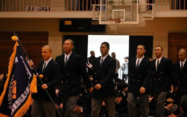 22日午前9時に始まる初戦で、早稲田実(東京)と対戦する。山本主税(ちから)校長は「日本中の誰もが注目する素敵なカードになった。大舞台を堪能してほしい」と笑顔で話した。応援部と吹奏楽部によるエールもあった。