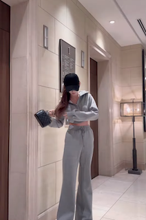 グレーのジャージ姿を披露しており、抜群のスタイルが露わになっている。