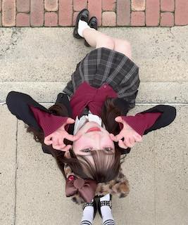 豹柄のキティのカチューシャを身につけ、カメラをみつめる表情は非常に可愛らしい。