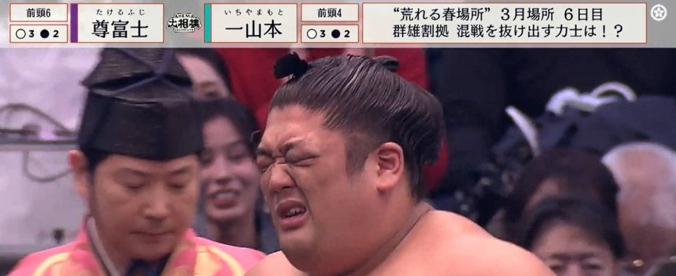 <大相撲三月場所>◇六日目◇14日◇大阪・エディオンアリーナ【映像】心配の声が上がった左目の様子 前頭六枚目・尊富士(伊…