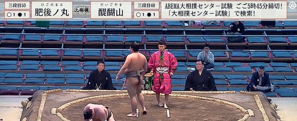 醍醐山が取組後にすぐに立ち上がれず四つん這いになってしまうアクシデントに、ABEMAの視聴者も「フラフラ」「ん?大丈夫?」「どうした?」と心配の声を寄せていた。(ABEMA/大相撲チャンネル)