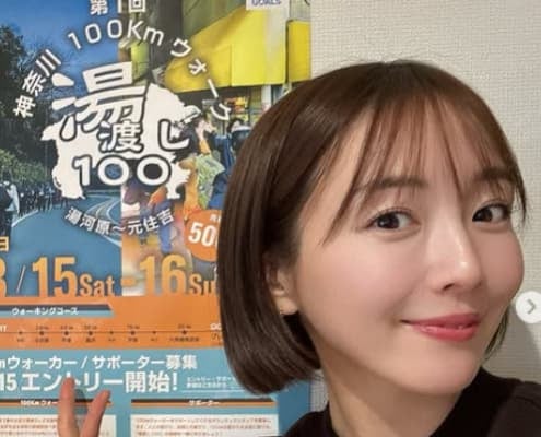 「明日100km歩きます🚶いよいよ明日は100kmウォーク!ご縁があり、記念すべき第1回大会にお声がけいただき、挑戦することになりました。「100km歩くなんてマジ!?」と驚きつつも、100kmウォークの世界を味わってみたいと思って気づけば「歩きます!」と即答していたわたし。」と綴り、3枚の写真をアップした。