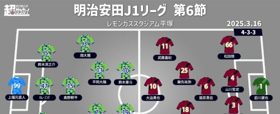 【明治安田J1リーグ第6節】 2025年3月16日(日) 15:00キックオフ 湘南ベルマーレ(2位/11pt) vs …