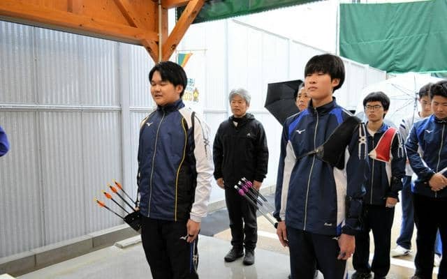 松江東のアーチェリー部主将の藤原温絆(はるき)さん(2年)は「インターハイ、国スポに出場できるように仲間と日々努力を重ねていきます」と決意表明。島根大の同部主将、富永悠聖(ゆうせい)さん(2年)も「日々切磋琢磨(せっさたくま)していきたい」と述べた。