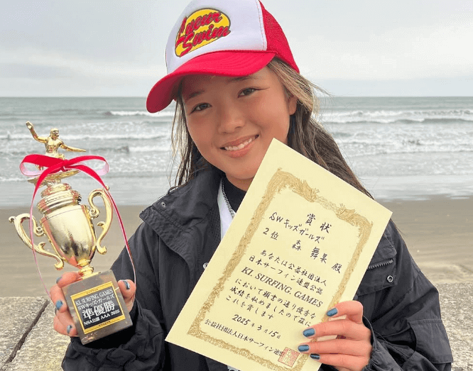 森舞果は「KI.SURFING.GAMES 2025 2位でした🥈🙏🏻」と綴り、複数枚の記念ショットを公開した。