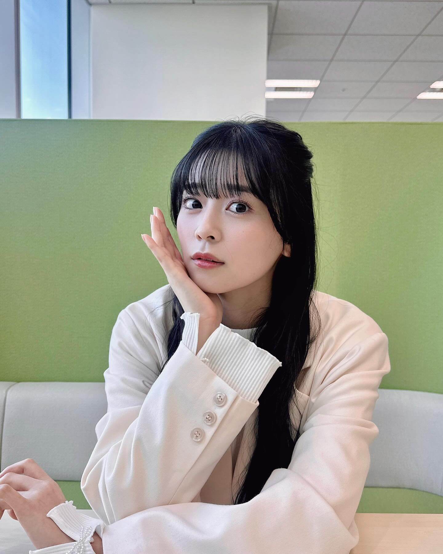 頬に手を添え、可愛らしい表情を浮かべるショットでファンを悶絶させた。