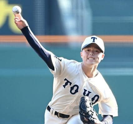 2点を先行された東洋大姫路の悪い流れを断ったのは、二回から先発の阪下漣を救援した木下鷹大(ようた)だった。「阪下の調子が悪く、いつでも投げられる準備をしていた」。伸びのある直球に縦と横のスライダーを投げ分けて9奪三振、無失点で投げきった。先頭打者だった五回は左翼へ三塁打を放ち、大量点の足がかりも。「自分が打ったことで勢いがついてよかった」とはにかんだ。