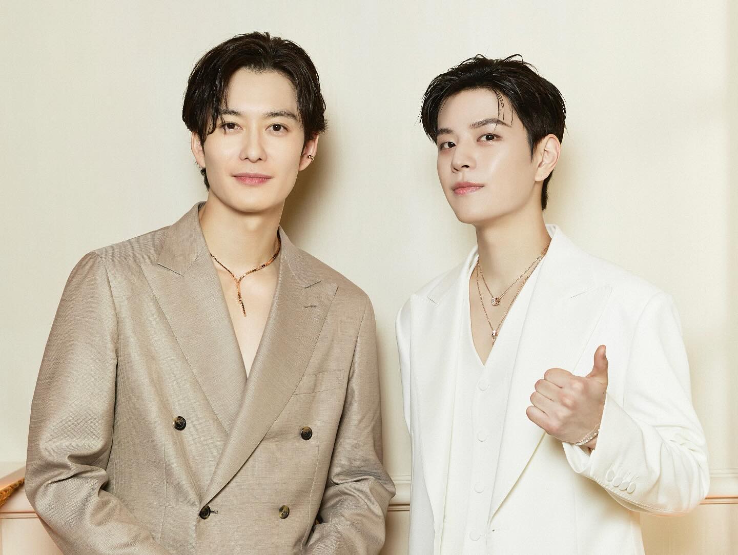 二人とも綺麗なジャケット姿にchaumetのアクセサリーがとても似合っている。