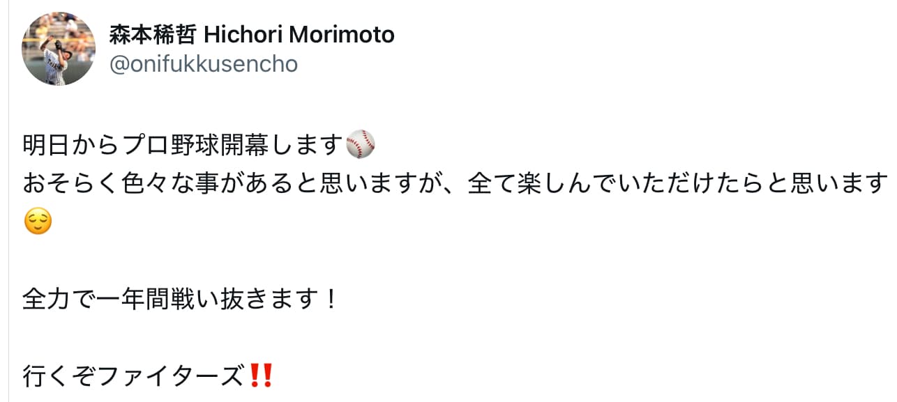 日本ハムの森本稀哲コーチが27日、自身のXを更新した。