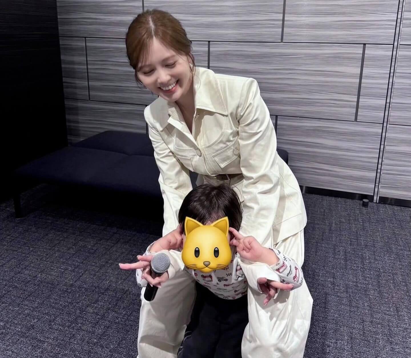 メイク担当者の子供と遊んでいる写真をアップした。