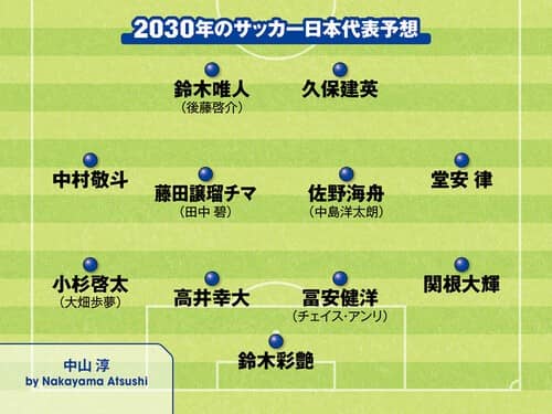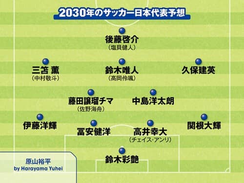 サッカー日本代表の来年の北中米W杯のメンバーは、これまでの戦いぶりからすると大方の予想はつくだろう。では、さらにその次の2030年W杯はどうなるか? 年齢的にもさすがに世代交代がありそうだ。どんな顔ぶれになるか、識者に予想してもらった。