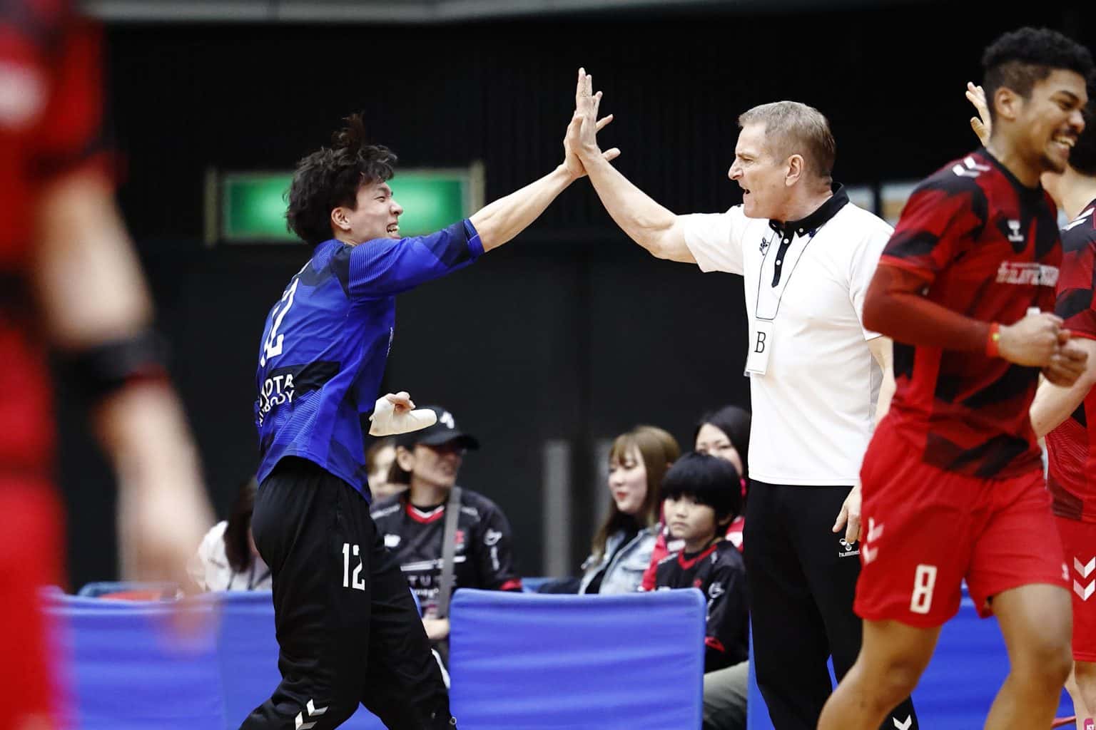 加藤選手は最初のシュートストップに成功すると、ガッツポーズをしながら「よっしゃー」と吠えた。その後もシュートを止めるたびに両手を突き上げ、観客席に向かって何度も雄叫びを上げる。この日の加藤選手は29本中15本という驚異の51.7%の阻止率を記録し、チームの勝利に貢献した。