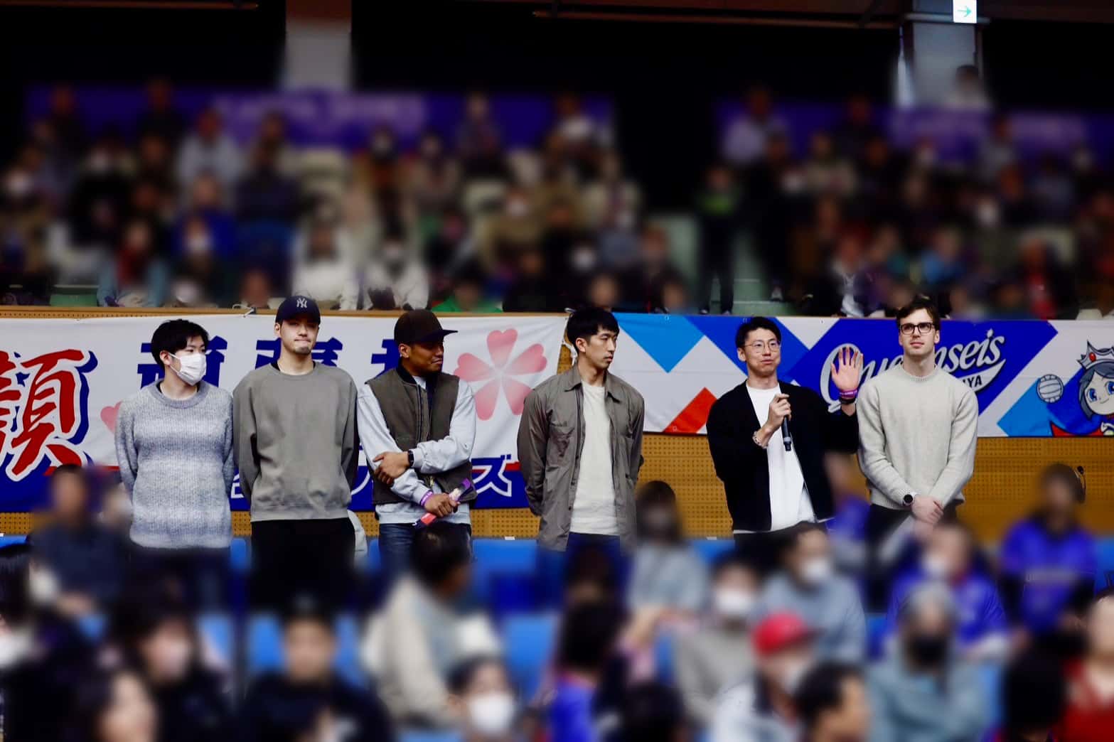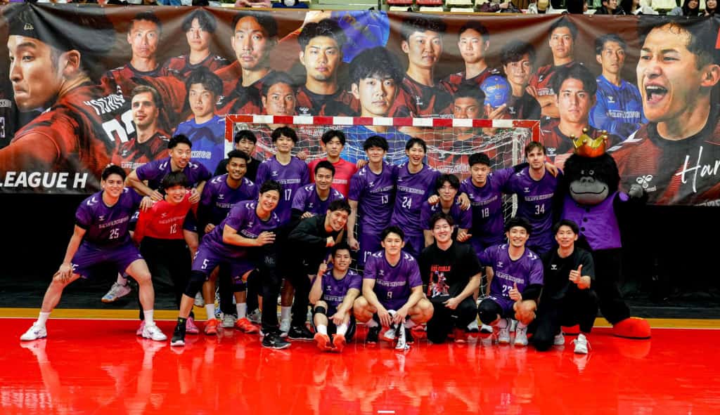 2月15日、刈谷市体育館で行われた安芸高田わくながハンドボールクラブ戦の勝利チームインタビュー。アリーナMCからこの日着用した紫ユニフォームの意味を聞かれたパウエル・パチコフスキー選手は流暢な日本語でこう叫び、満員のアリーナを沸かせた。