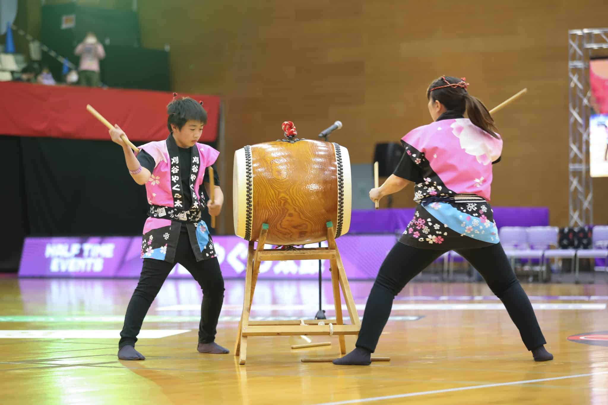 ハーフタイムには刈谷市を中心に活動している和太鼓チーム「刈谷やぐら太鼓」が演奏を披露し、来場者を楽しませた。