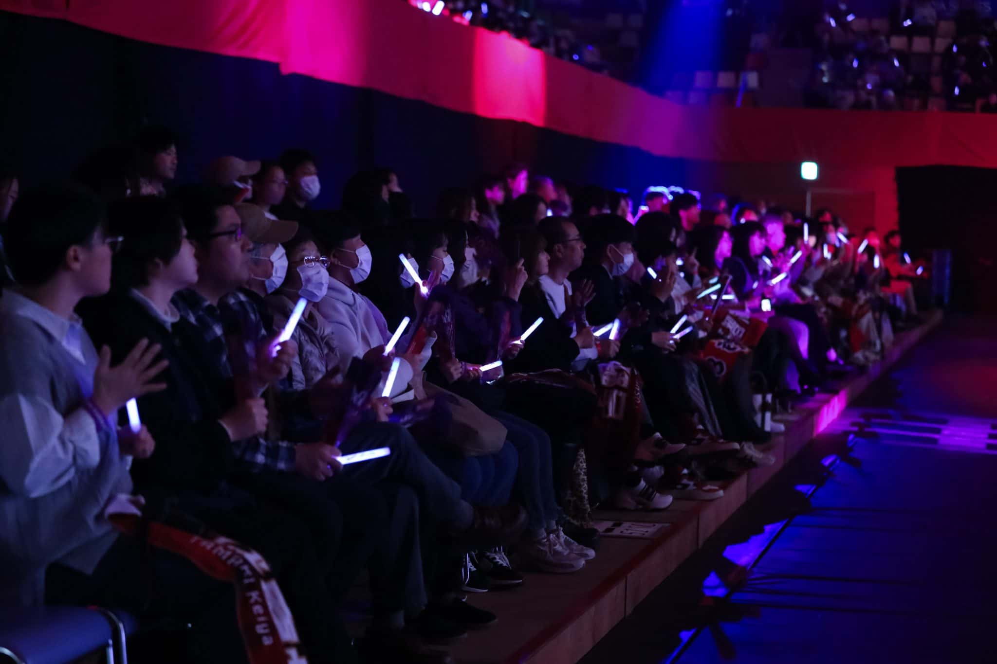 検討を重ねた結果、会場装飾も紫を全面に打ち出すことに。試合会場では紫のペンライトやシリコンバンド、ハリセンを配布し、選手入場時には360度ぐるりと紫の光が揺れる幻想的な光景を作り出した。