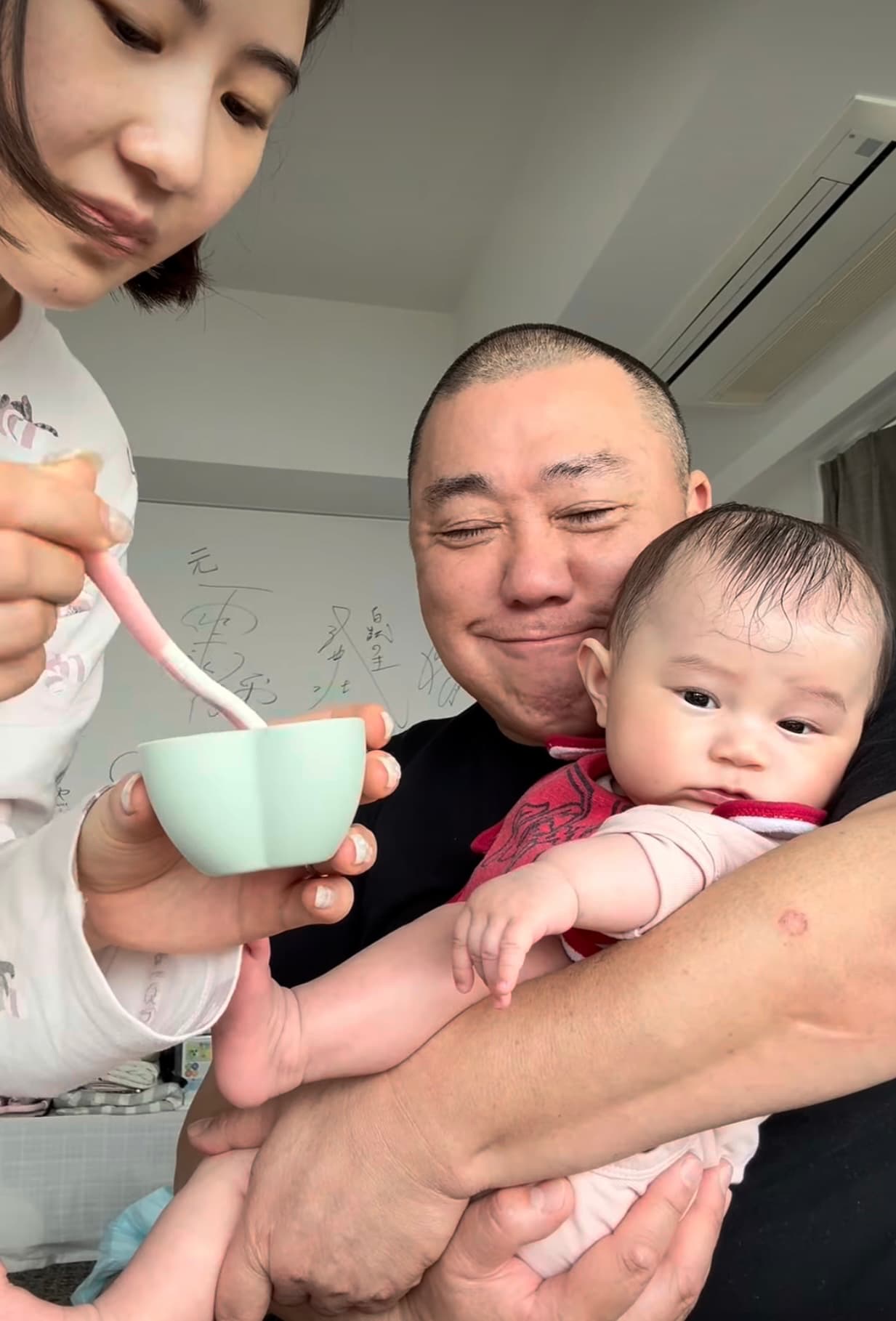 この投稿には多くのいいねの他、「横顔もパパそっくり♡」「冷静なあなたじゃないのツッコミ最高です😂😂笑笑」などのコメントが寄せられている。