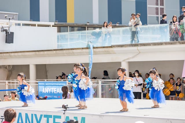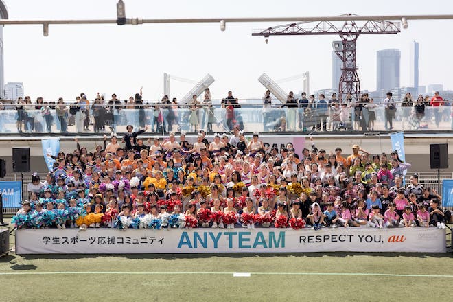 ANYTEAM RESPECT YOU, auの協賛で開催された今大会。チーム活動を応援するANYTEAMは、32チームが出場した今大会の開催に賛同し、協賛した。当日は元AKB48の大森美優さんやFC東京の大人気マスコット・東京ドロンパと、埼⽟武蔵ヒートベアーズ公式チアリーダー・B girlsのコラボパフォーマンスが行われ、会場は大きな盛り上がりを見せた。