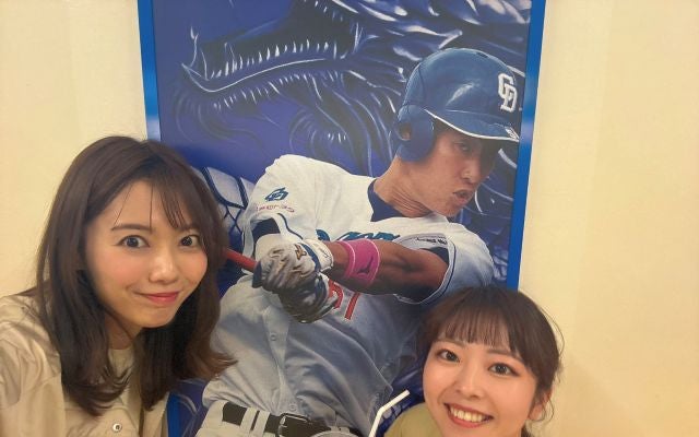 「今日は朝からロケ!昨日は2軍からの1軍取材📝1軍はなかなか長い試合でしたが最後まで見届けました⚾️写真は東海テレビのあずみちゃん💙仲良くしてくれて嬉しい☺️!」と綴り、写真をアップ。