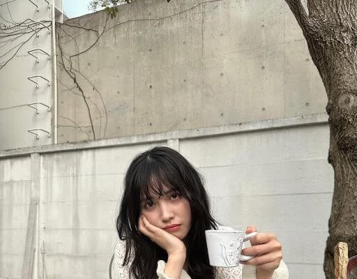 春の訪れを待ちわびている気持ちがすごく伝わってくる。柔らかい光の中で、ナチュラルメイクとゆるふわな髪型、そしてレースのトップスがとてもよく似合っていて、まるでヨーロッパのカフェで過ごしているかのような雰囲気。ポカポカした日もあれば急に寒くなったりするので、気持ちがすごくリアルに感じられる。