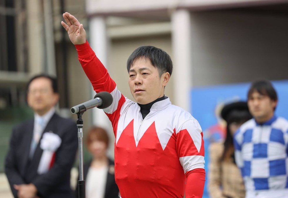 「我々岩手競馬騎手一同は、ドラウマチック2025のスローガンのもと前年度よりさらに岩手競馬が盛り上がるよう全身全霊を尽くし騎乗することをここに誓います」