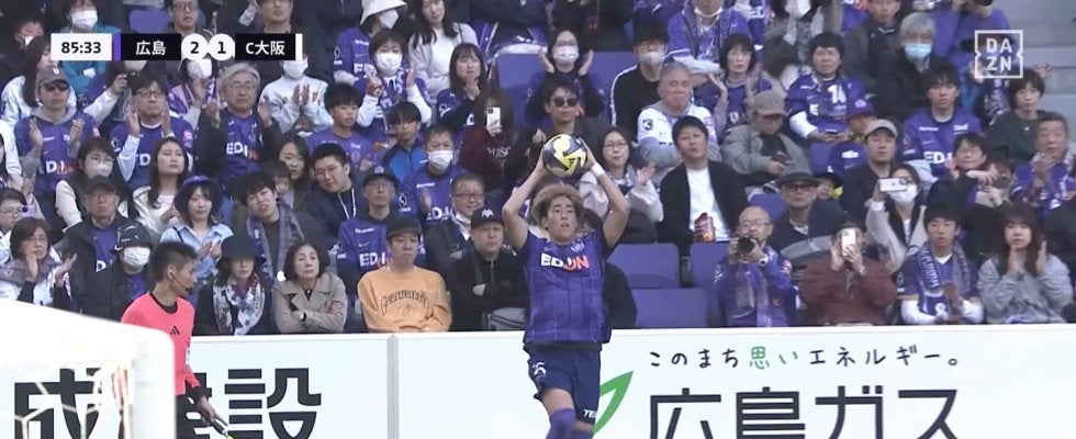サンフレッチェ広島のDF中野就斗が高速ロングスローで逆転ゴールを呼び込んだ。CKのような鋭い弾道に、ファンが興奮している。