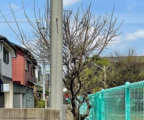 「いあいぎり覚えな通れへんやないか。」というツッコミとともに投稿されたのは、ルートを案内する『Google Map』のスクリーンショットと、その道をふさぐように立つ木の写真。