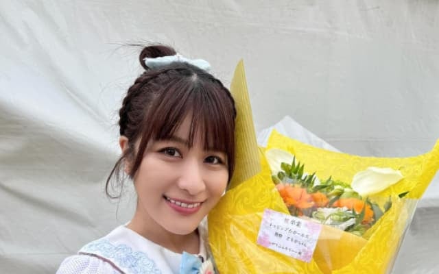 「トッピング☆ガールズ卒業」と綴り、2枚の写真をアップ。花束を手に最新ショットを披露した。
