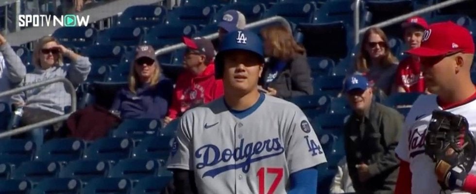 ドジャースの大谷翔平投手が「1番・DH」で先発出場。初回の第1打席でいきなり爆速ヒットを放ち“自己新記録”をあっさり達成。塁上では今日もさっそく“デコルテポーズ”を披露していた。