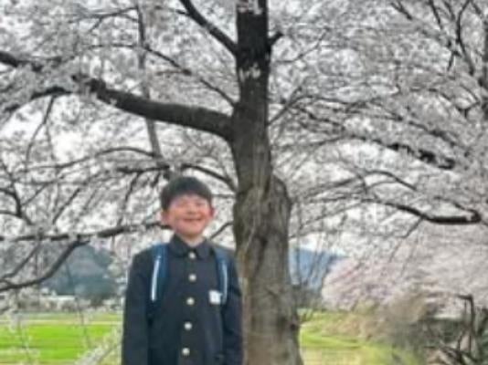 「昨日は息子の入学式でした。桜が咲く加賀の町で小学一年生です。」と綴り、複数枚の写真をアップ。