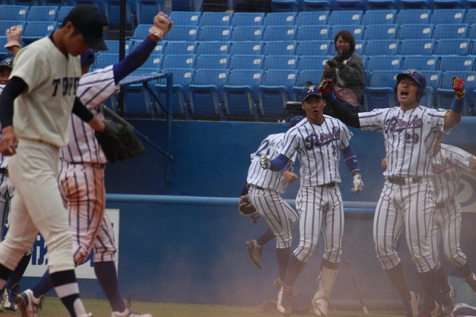 それでもここ数試合で粘り強さが顕著な立正大は、8回無死一、二塁のピンチも釘宮光希投手(3年・日大三)が併殺打とファーストゴロで無失点に抑えると、9回裏に2死から井橋の四球と大平夏輝内野手(4年・東邦)の安打で一、三塁のチャンスを作る。そして、最後は相手投手の暴投によりサヨナラ勝ち。