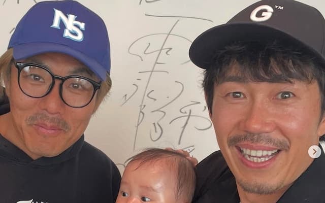 「にこりちゃん初対面」と題された投稿では、大村朋宏が赤ちゃんを抱っこし、藤田憲右がその手に優しく触れている様子が写されている。ともに10代の子を持つ父親だけに、2人の柔らかな笑顔と落ち着いた対応が印象的だ。